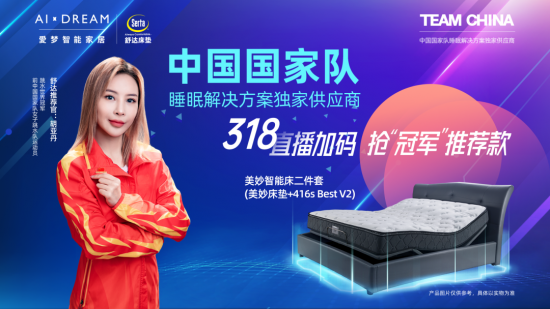 舒達(dá)所屬愛(ài)夢(mèng)集團(tuán),是TEAM CHINA中國(guó)國(guó)家隊(duì)睡眠解決方案獨(dú)家供應(yīng)商。點(diǎn)擊下面小程序,把“冠軍款”床墊搬回家,3月18日19:00,與冠軍相約,我們不見不散!