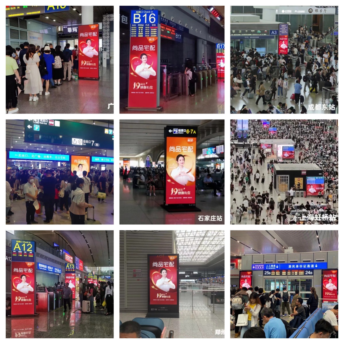 線上玩法深植用戶心智,線下投放抓住用戶視線。一組聲勢浩大的慶生大牌,賦予營銷場景足夠的儀式感。6月,尚品宅配“19周年 感謝有你”廣告畫面刷屏北京、上海、廣州、深圳、長沙、成都、鄭州、貴陽、石家莊等高鐵站,覆蓋超1200萬人次。營銷聲量的高曝光,反哺線上二次傳播,創(chuàng)造了新的流量入口。
