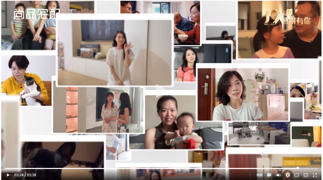 摒棄花哨的自我標(biāo)榜,將焦點(diǎn)對準(zhǔn)客戶服務(wù)。尚品宅配19周年錨定客戶為本的品牌初心,以“19周年,感謝有你”,輸出溫情短視頻,用不同人群的真實(shí)用戶反饋,落腳于“感謝每位客戶的選擇,我們一起把房子變成家”,激發(fā)新老用戶的情感共鳴;展現(xiàn)創(chuàng)新服務(wù)歷程,用門店、設(shè)計(jì)、安裝、售后等服務(wù)人員的親情服務(wù)故事,敲動消費(fèi)者的心墻,深入拉近與消費(fèi)者的距離。