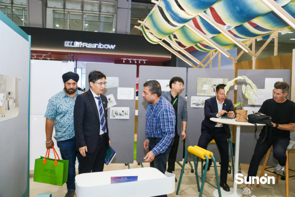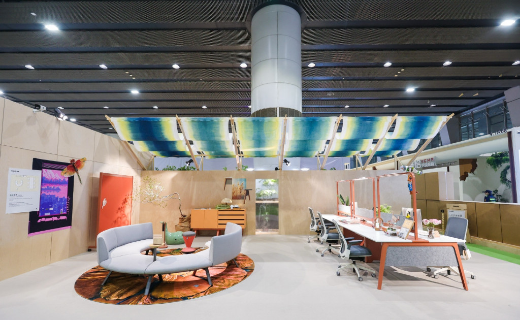 在綠色自然環(huán)境的加持下,有組團(tuán)觀眾嘗試現(xiàn)場演繹如何在同一個辦公空間下實(shí)現(xiàn)開會、洽談、腦暴等多業(yè)務(wù)場景。圣奧推出的米庫家族,其5套系統(tǒng)可搭配出N種辦公場景,包括多款可移動隔斷架、辦公桌、高吧高凳、白板、講臺、充電樁等,整套產(chǎn)品可滿足當(dāng)代年輕人可靈活移動、可升降、靈活充電、自由分隔、隨時記錄等辦公場景需求;
