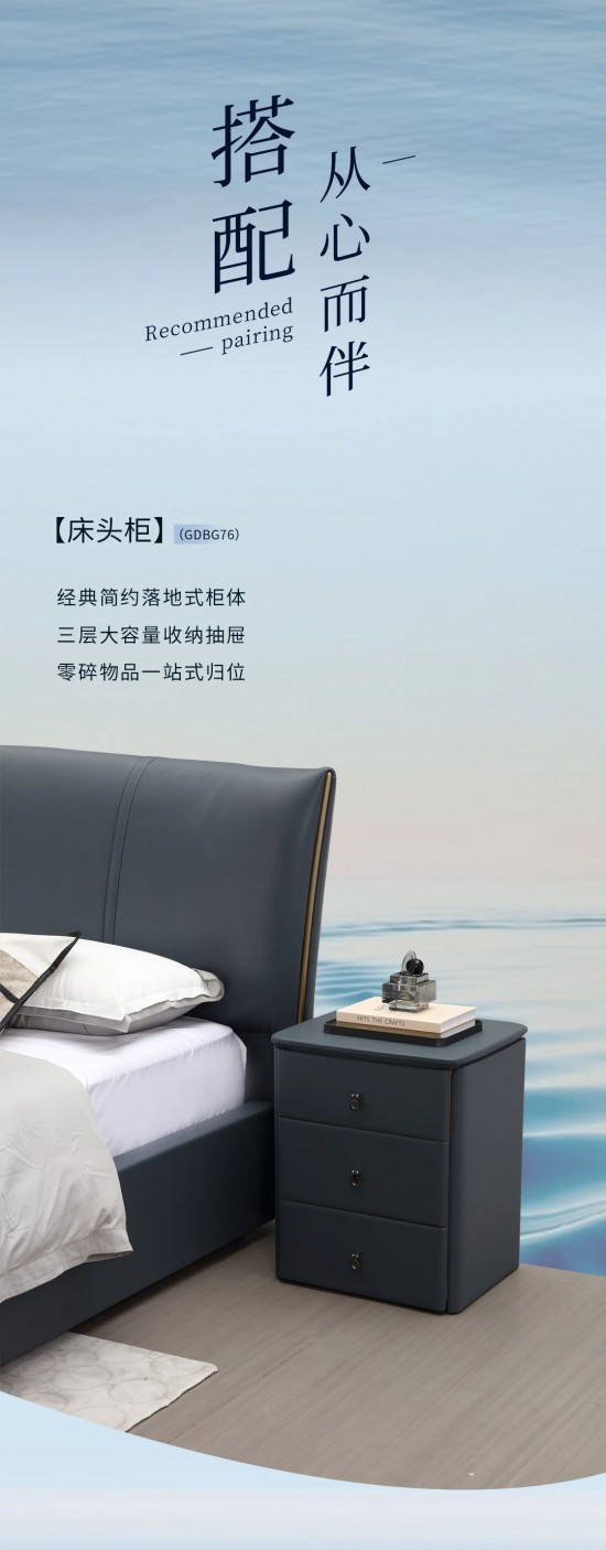核心提示:簡約流線床頭,如風(fēng)掠過湖面的流暢弧度,巧妙鑲嵌金屬色裝飾條,消弭整體視覺上的厚重感。