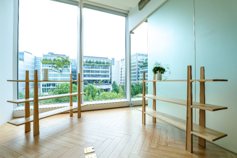 《遠山架》的設計正體現(xiàn)了這種態(tài)度:它摒棄了多余的裝飾與固定件,以最少的加工實現(xiàn)最大的結構表現(xiàn)。構件間的接口均以“自支撐”原理完成,確保在廢棄后能100%分解回收。這不僅是形式選擇,更是對“可延續(xù)使用”這一核心理念的物質化表達。