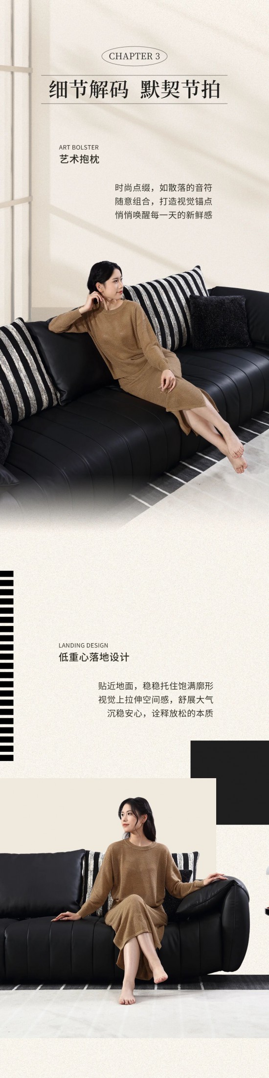 核心提示:純黑簡約,條紋時尚輕快,一體式靠包可隨心變換,定義屬于自己的摩登時刻。
