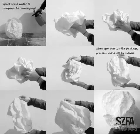 偶然一次,辛瑤遙發(fā)現,將宣紙片進行疊加后,透過的光會變得很柔和很溫暖,于是,接下來的事是理所當然了,辛瑤遙開始研究裝裱和紙撲,用宣紙片進行塑形,一開始是方形、六邊形,但是這些都太普通——一次次嘗試,一次次覺得不完美,直到圓形宣紙燈和可變形的燈做出來之后,設計師才真的覺得這個燈有了它的價值,幾個月的堅持,沒有骨架的球形宣紙燈誕生。