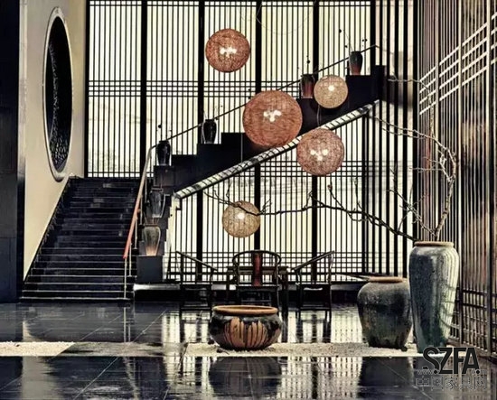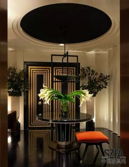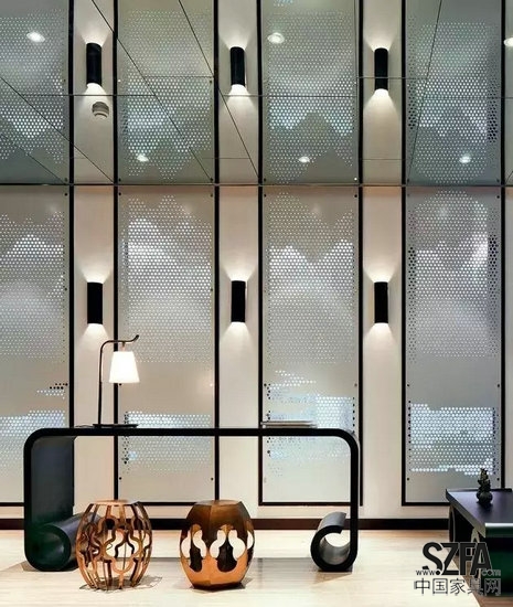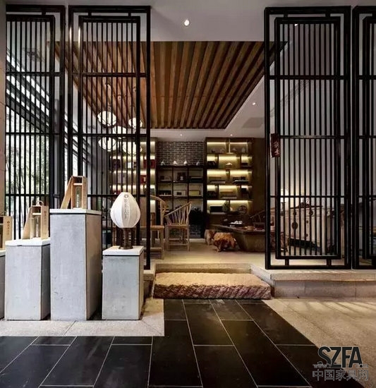 傳統(tǒng)中式風(fēng)格的天花板主要分為天花和藻井,門窗則一般使用欞子做成方格圖案。在簡(jiǎn)約主義風(fēng)行的今天,設(shè)計(jì)師更傾向于將這些元素融入現(xiàn)代風(fēng)格的室內(nèi)設(shè)計(jì),體現(xiàn)對(duì)中式傳統(tǒng)的精神追求。