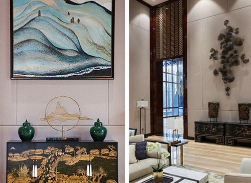 “湖光山色”項目位于西安歷史遺址觀光帶上,毗鄰鎬京遺址公園與斗門水庫,四周環(huán)境怡然靜雅,歷史文化氣息濃厚,近期其營銷中心已完工,軟裝設(shè)計交由深圳印象空間呈現(xiàn)。結(jié)合周圍環(huán)境及甲方需求,印象空間最終將西安古都情懷融于作品中,于細微之處傳遞意境之美。