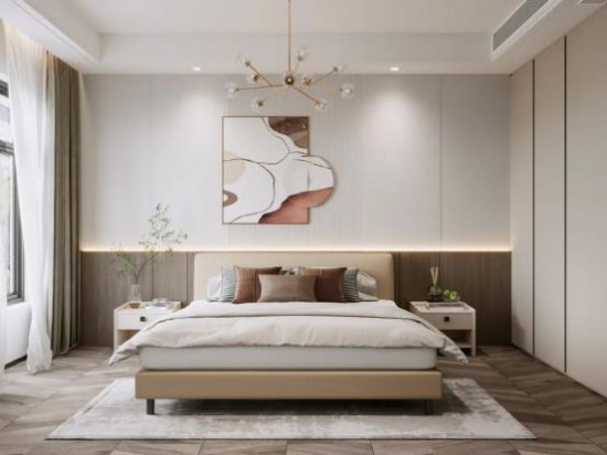 臥室注重與居主產(chǎn)生情感共鳴,藝術(shù)留白的格局設(shè)計更顯簡約輕盈。木飾板墻面與綠植呼應(yīng),別有一番幽雅風(fēng)韻。