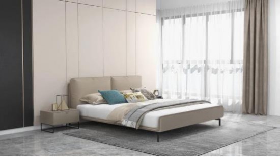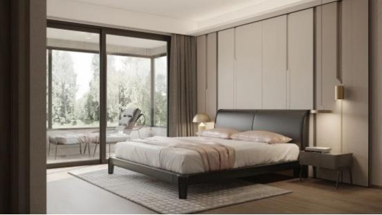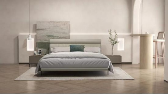 臥室空間里,一張CBD家居·黑金 | HG002軟床,淺灰色奠定靜謐舒緩的睡眠氛圍,獨立大靠包飽滿軟彈,齊邊框加擋邊式床尾設(shè)計,節(jié)省空間,穩(wěn)固床墊,守護整夜安穩(wěn)好眠。